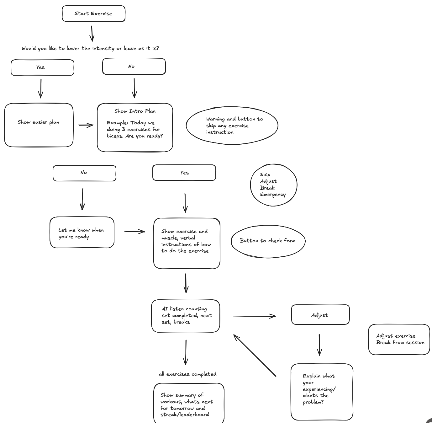 Fitness apps and online videos feel generic — they can’t sense how you’re feeling, adjust intensity, or give real feedback.